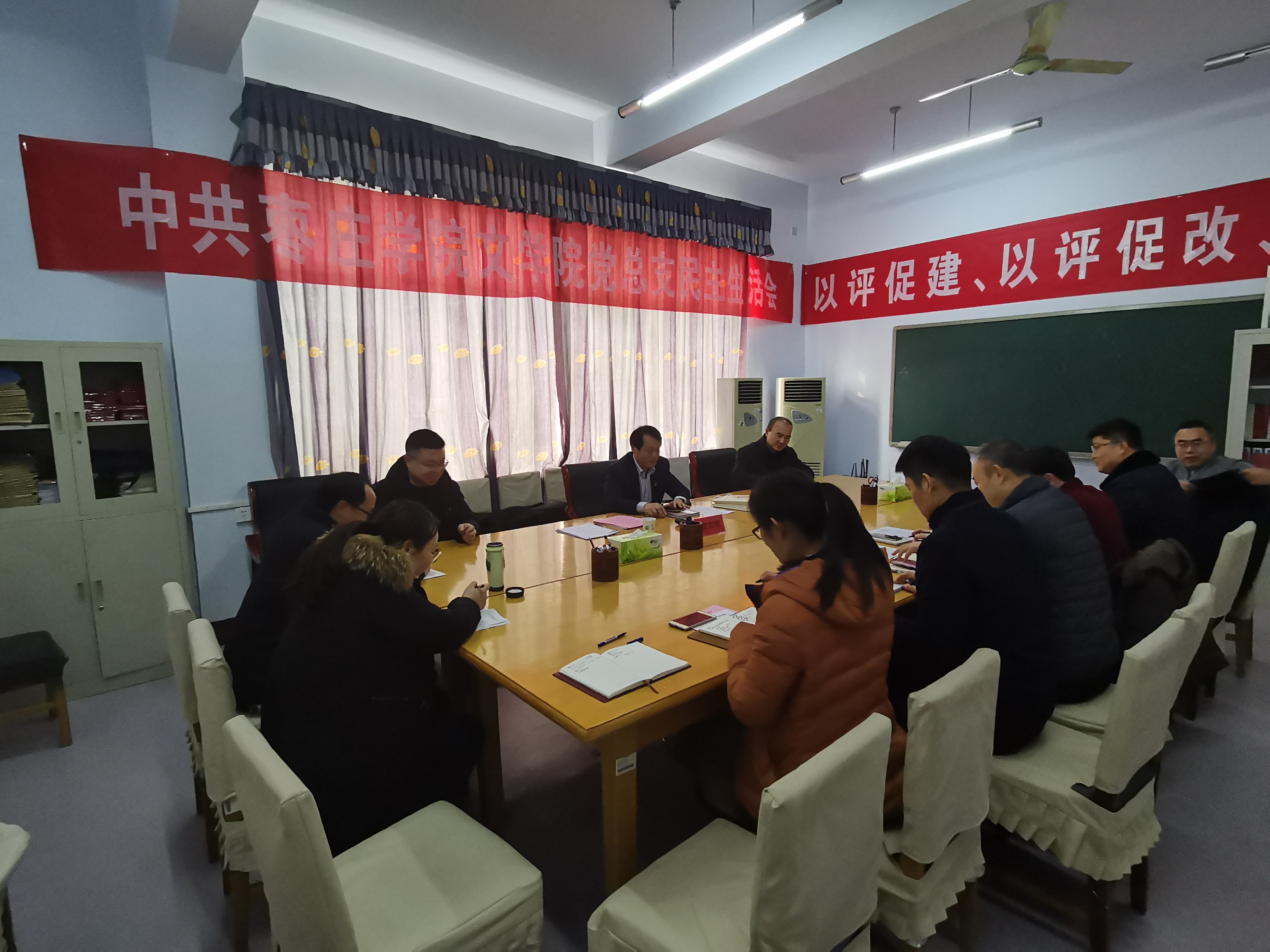 根据学校党委部署安排,1月21日下午,bat365正版唯一官网在228会议室召开2020年度民主生活会。校党委副书记曾宪明同志,督导组成员、保卫处副处长王昌龙同志到会指导。学院党总支班子成员宋建修、杨全顺、姬广华、段圣玉、王茜参加会议,院长助理、支部书记、教研室主任列席会议。会议由党总支书记宋建修主持。