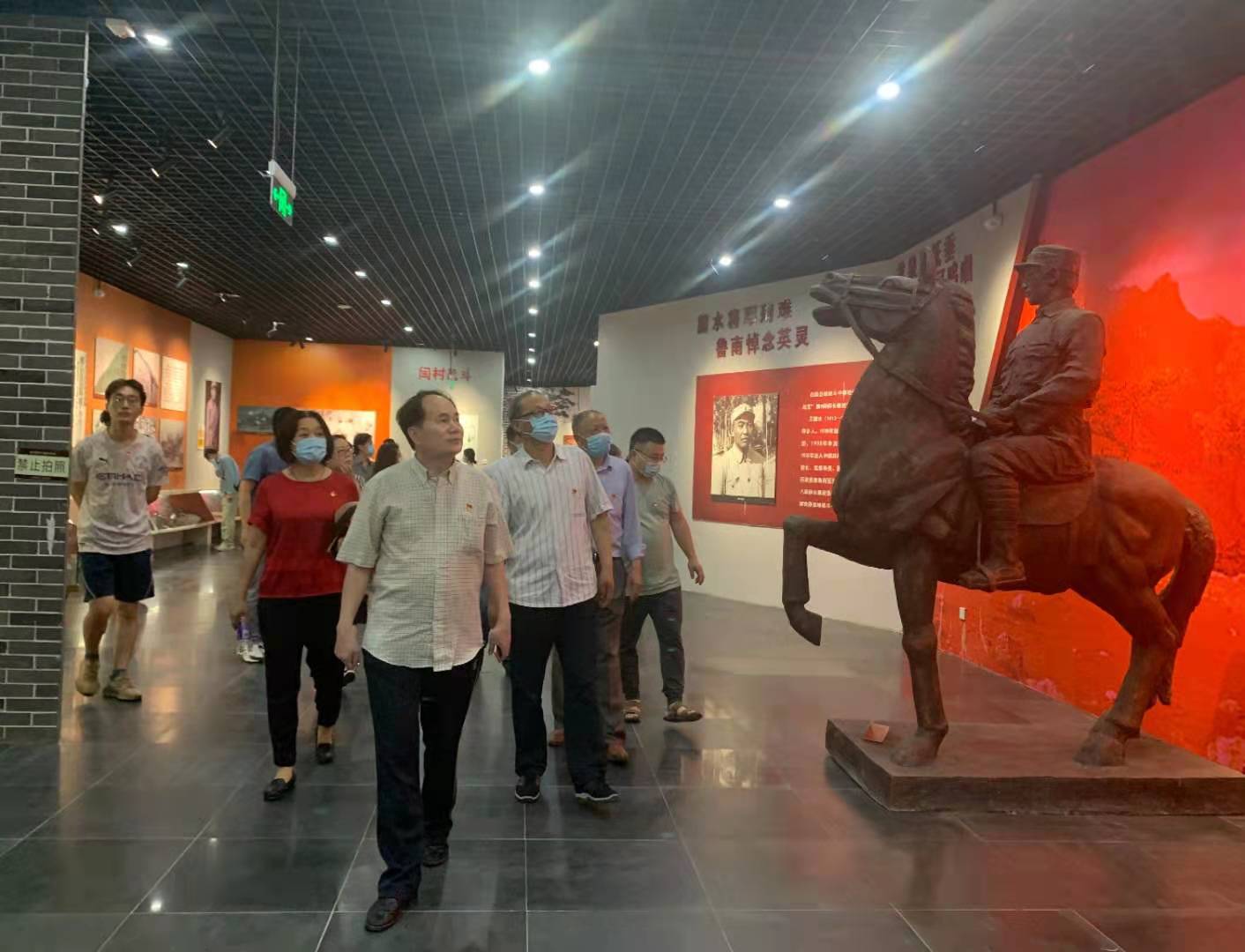 在鲁南人民抗日武装起义纪念碑前,50余名师生党员面对鲜红的党旗,致敬革命先辈,重温入党誓词,再一次接受心灵的净化和党性的洗礼。随后,在讲解员的带领下,师生党员依次参观了鲁南人民抗日武装起义纪念馆、室外大型兵器陈列广场和国防科技教育城。在纪念馆中,师生党员共同回顾了“滕县保卫战”“铁道游击队”“解放滕县城”等战役,重温了党的光辉历程,缅怀了革命先烈的丰功伟绩,馆内一幅幅照片、一件件文物、一个个多媒体主题情景剧场给大家留下了深刻印象。参观室外大型兵器陈列广场和国防科技教育城,我国自主研制的歼教五型飞机、载人航天工程模拟演示厅、武器装备厅等军工设备,充分展现出国家航天事业取得的辉煌成就和国防科技的飞速发展。