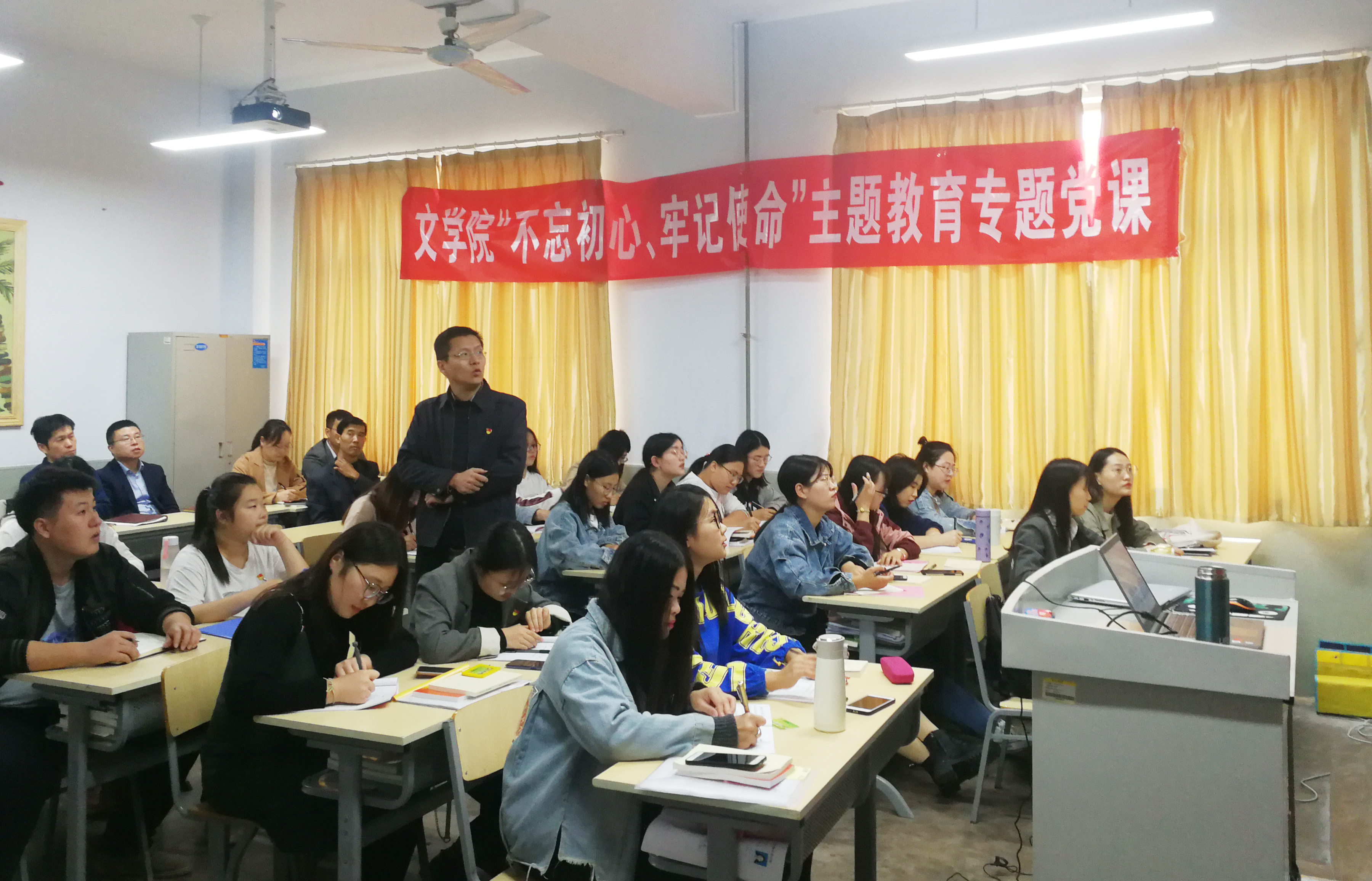 根据学校“不忘初心、牢记使命”主题教育的安排,进一步引导教育全体党员坚定理想信念,不忘初心、牢记使命,10月23日下午,bat365正版唯一官网党总支书记史大丰在216教室为全体党员讲授了“坚定文化自信、牢牢把握意识形态主导权”专题党课。