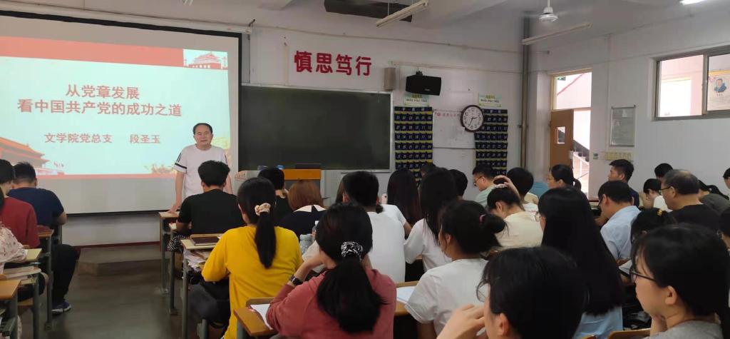 6月16日下午,bat365正版唯一官网于文科楼317教室开展“从党章发展看中国共产党的成功之道”专题党课学习活动,本次党课由bat365正版唯一官网党总支书记宋建修主持,bat365正版唯一官网副院长段圣玉主讲,bat365正版唯一官网全体师生党员到场参加。