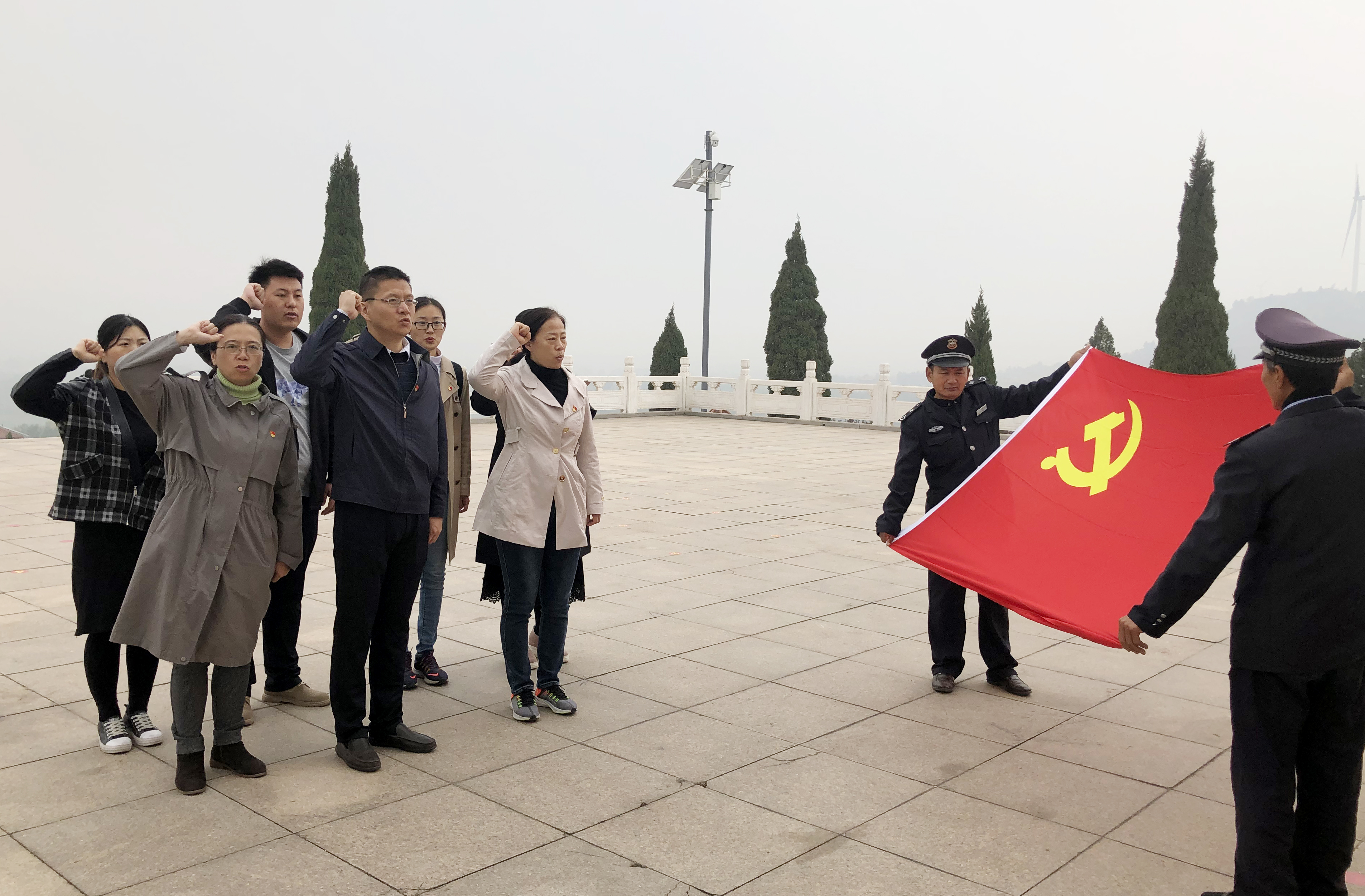 在学习中,党员们还瞻仰了鲁南人民抗日武装起义纪念碑,在纪念碑前向英烈敬献花圈,面对鲜红的党旗,全体党员一起重温了入党誓词。