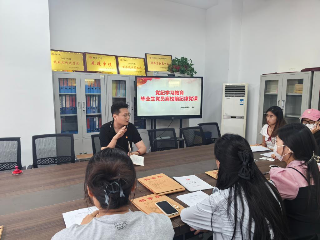 朱旭以“党纪学习教育:毕业生党员离校前纪律党课”为题,首先回顾了党的纪律建设的重要性和必要性,强调了党员必须遵守党的纪律,维护党的团结和统一。随后,他结合当前形势和学院实际,深入剖析了党员在未来日常生活和工作中可能遇到的纪律问题,并提出了具体的解决方法和建议。