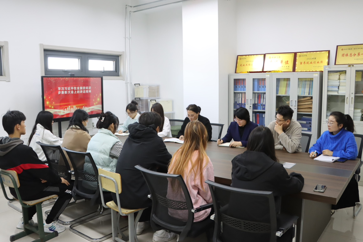 11月25日下午, bat365正版唯一官网积极响应国家号召,组织十余名少数民族学生,深入学习习近平总书记在全国民族团结进步表彰大会上的重要讲话精神,党委副书记华莹出席,统战委员王元元及辅导员代表参加。
