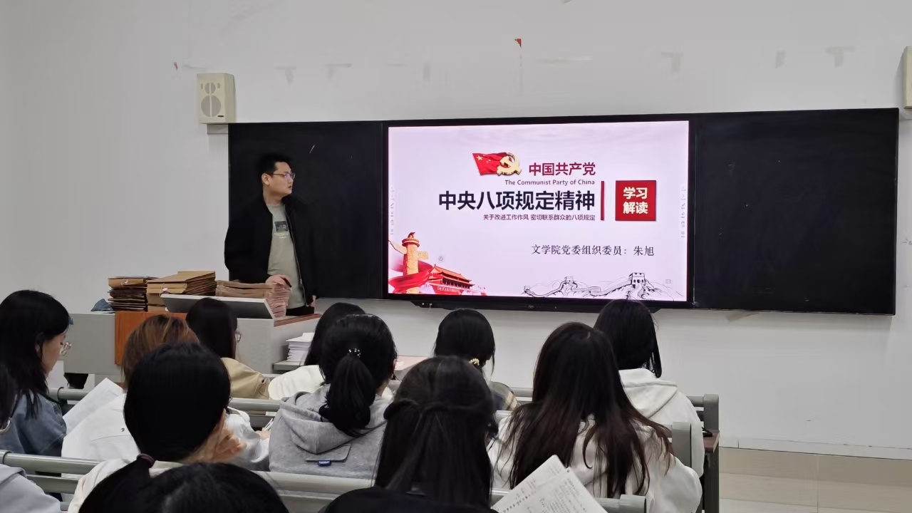 为深入贯彻中央八项规定精神,进一步加强全院作风建设和纪律教育,4月22日,bat365正版唯一官网党委组织委员朱旭在德艺楼7102室为全院各班学生干部69名同学讲授了题为“中央八项规定精神学习解读”的专题党课。