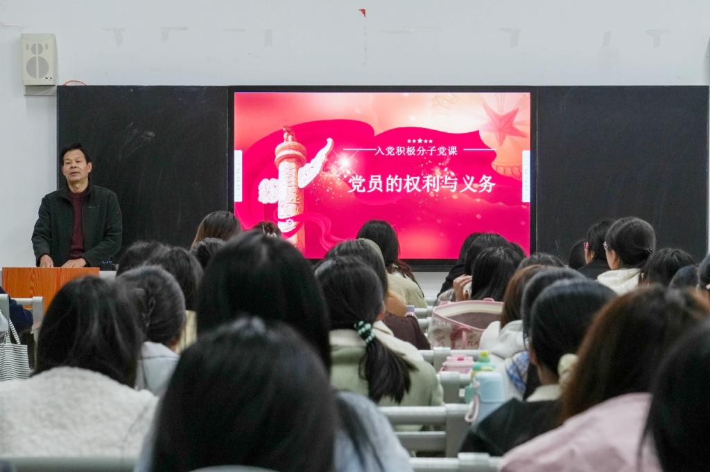 宋明峰以“党员的义务与权利”为核心主题,从党员义务与权利的核心定义、现实价值,以及在日常学习工作中如何规范履行义务、依法行使权利等维度展开细致讲解。授课过程中,他结合典型案例、具体数据,并运用通俗易懂的分析方式,使入党积极分子深刻理解到,党员的义务与权利相互依存、缺一不可,既要珍惜和正确运用自身权利,也要始终坚守初心、自觉履行党员应尽义务。