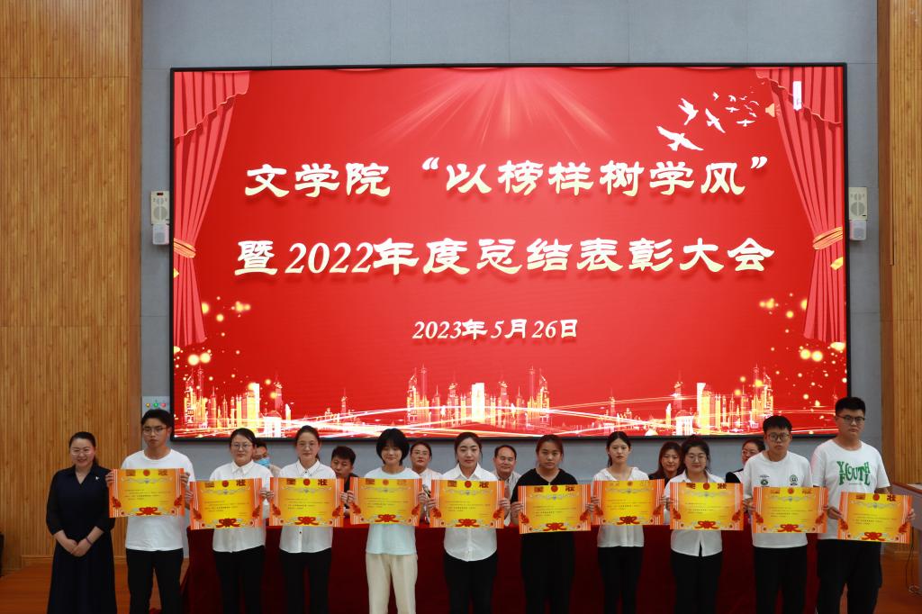 为深入贯彻学习习近平新时代中国特色社会主义思想和党的二十大精神,积极培育和践行社会主义核心价值观,充分发挥先进典范的示范引领作用,5月26日下午,bat365正版唯一官网于增信楼3113隆重召开bat365正版唯一官网“以榜样树学风”暨2022年度总结表彰大会。会议由团总支书记王元元主持,党总支书记宋建修、副书记华莹、全体辅导员老师出席。