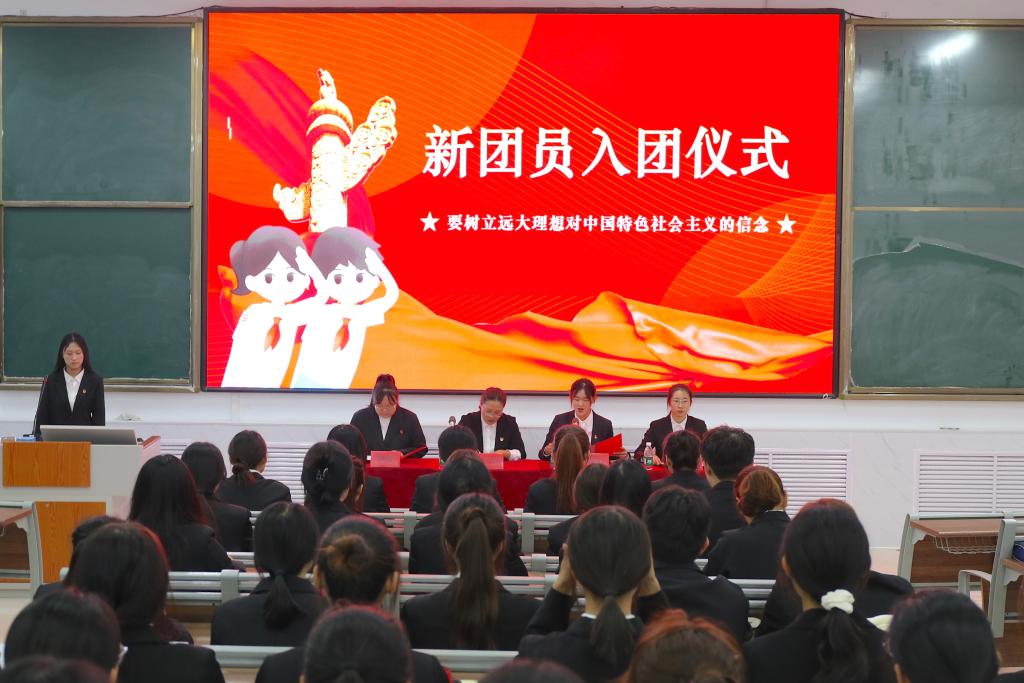 入团仪式在庄严的团歌中进行,刘丹丹宣读了新团员名单,李星宇带领全体团员共同学习习近平总书记对青年的寄语,激励广大团员青年要胸怀理想,志存高远,加强学习,增强本领,努力使自己成为栋梁之才。老团员代表翟芳誉和新团员代表安亚楠先后代表发言,号召团员青年们要努力学习,永续奋斗。刘新湛带领全体团员面对团旗庄严宣誓,铿锵有力地说出自己成为团员的心声,表示将做一名优秀的共青团员,为实现共产主义事业而努力奋斗。