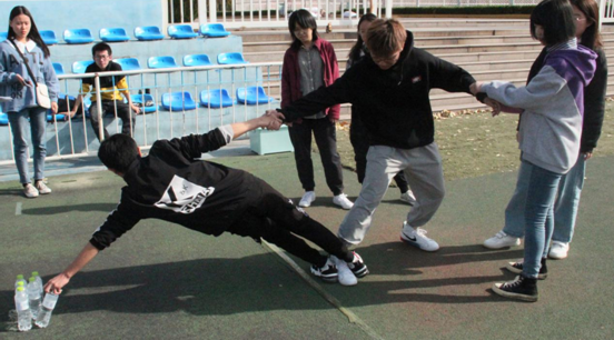 本次趣味运动会包括跳跳球、疯狂托球跑、摸石过河、珠行万里、群龙取水、快乐抱抱爆等多个项目。在摸石过河项目中,同学们沉着冷静、动作娴熟,赢得了现场观众的阵阵掌声。在“快乐爆爆抱”、“群龙取水”、“珠行万里”项目中,同学们相互配合、团结协作,展现出大学生的团结协作精神。在“疯狂托球跑”项目中,同学们小心翼翼、步履轻盈,他们屏住呼息控制来球的平衡,克服指压板的疼痛向终点跑去。田径场上大家笑声不断,纷纷为同学们加油鼓劲,将活动推入到高潮阶段。