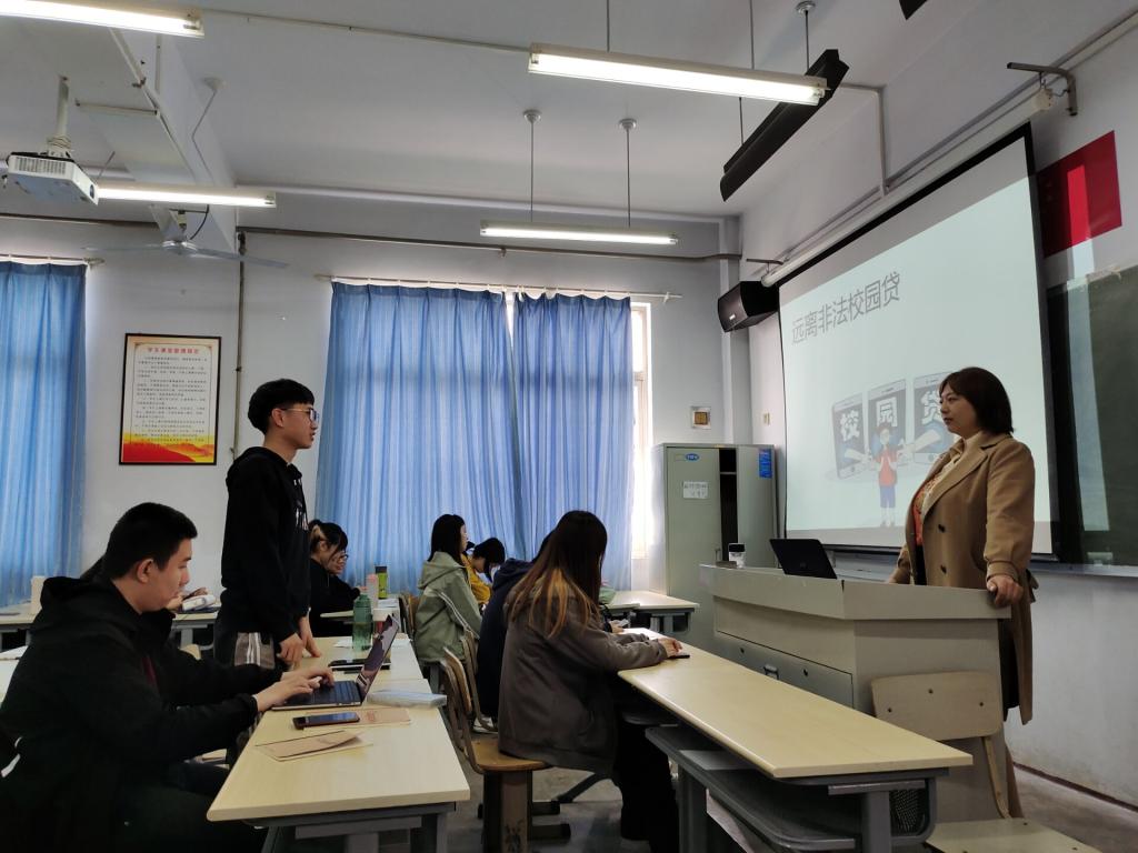 4月27日,bat365正版唯一官网开展“远离非法校园贷,建设美好新生活”主题班会活动,本次主题班会由各班辅导员主讲,全体学生到场学习。