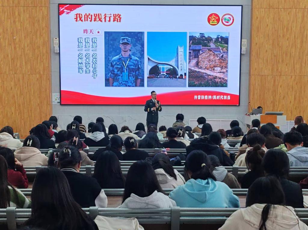 “讲”雷锋故事。16日,学院举行“传雷锋精神,践时代担当”讲座,特邀戎耀薛城老兵宣讲团团长、薛城区“手牵手志愿服务团”监事长褚福鹏为师生作报告。褚福鹏结合自身经历,声情并茂地讲解了雷锋故事、雷锋精神的内涵以及新时代青年学生如何更好践行雷锋精神。