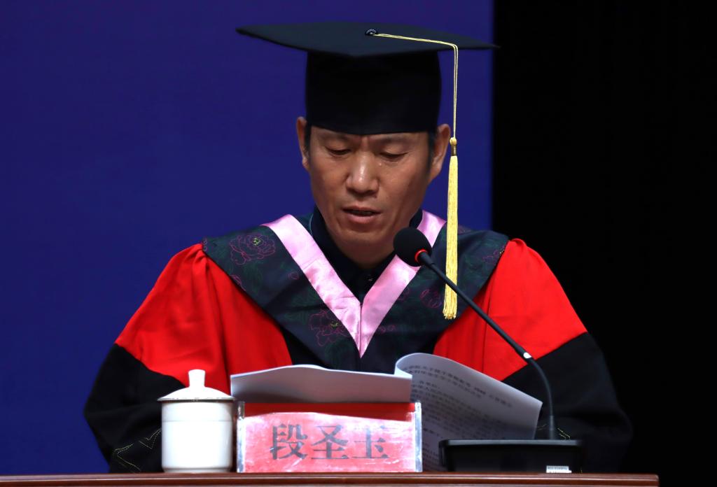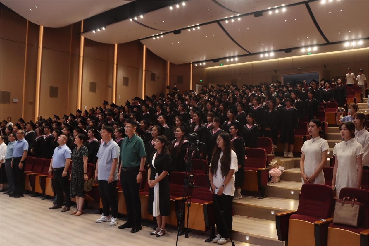 下午3时,在雄壮嘹亮的国歌声中,典礼正式拉开帷幕。段圣玉宣读《bat365正版唯一官网2024届毕业生学士学位授予的决定》及获得学士学位学生名单,同意授予陈文婕等198名普通全日制本科毕业生学士学位。