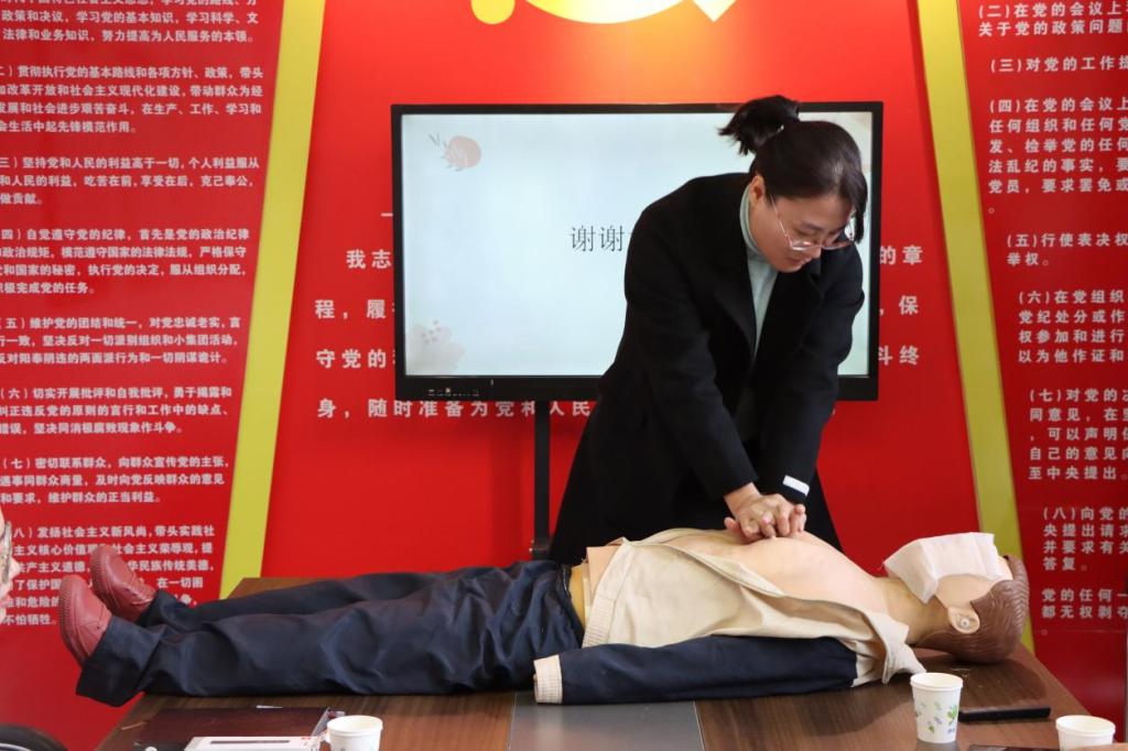 在实际操作环节,参训教师在救护师的悉心指导下,通过使用人体模型进行现场操作。针对教师实操练习中出现的错误动作,刘祥艳逐一进行纠正,以帮助他们准确掌握急救操作要领,现场气氛热烈而有序。
