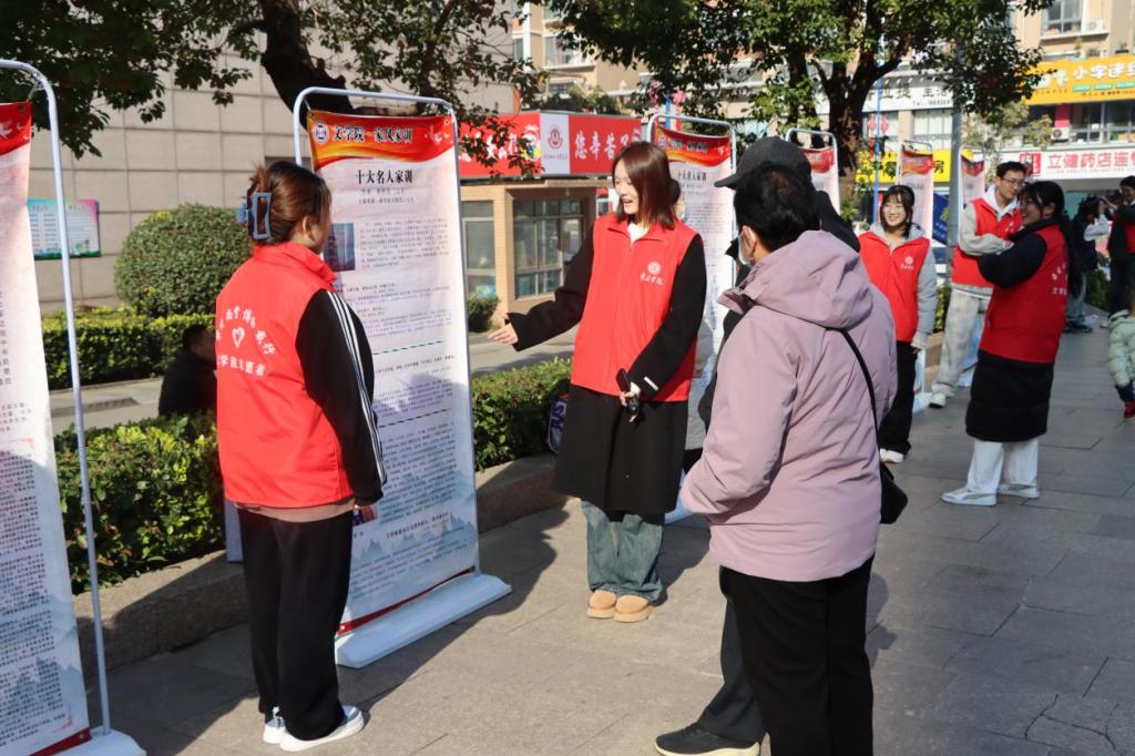 宣讲团在社区内行人密集处摆放易拉宝,采取“集中讲解+分散宣传”方式讲解老一辈革命家毛泽东、朱德、刘少奇、周恩来、陈云、邓小平、习仲勋和古代十大名人的家风家训,宣传汲取他们家风家训的价值内涵和文化精华,帮其家庭树立价值准则。