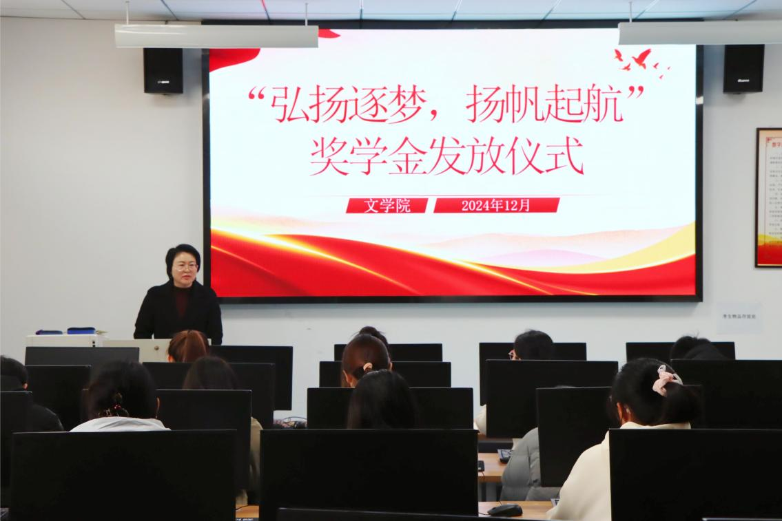2024年12月11日,bat365正版唯一官网在豁然楼A417开展“弘扬逐梦,扬帆起航”奖学金发放仪式,活动由辅导员赵小倩主持,学院党委副书记华莹、团委书记王元元、全体辅导员参加了本次活动。