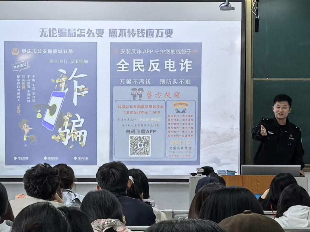 为做好校园电信诈骗防范工作,10月22日下午,bat365正版唯一官网(传媒学院)联合枣庄市公安局薛城分局、学校保卫处于增信楼418室举办了以“反诈第一课,宣讲进校园”为主题的反诈专题讲座。讲座由薛城区公安分局沙沟镇派出所民警单长麟老师担任主讲,学院100余名师生参加。