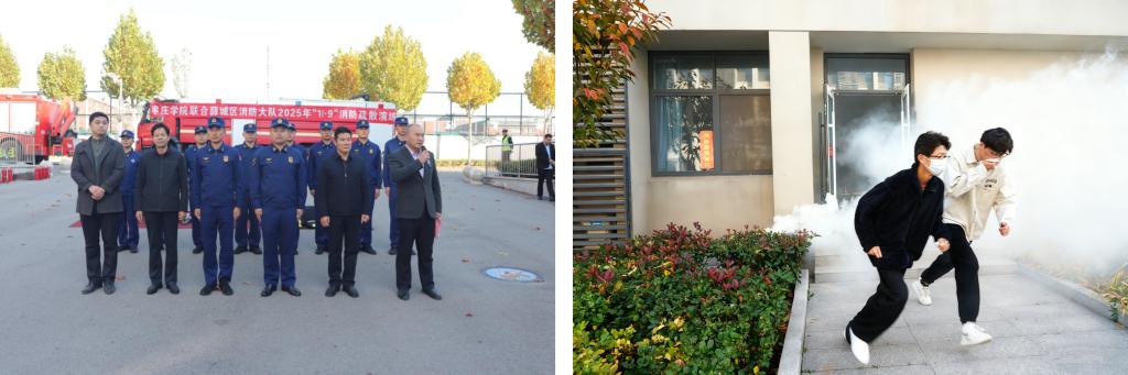 为增强师生消防安全意识,提高师生抵御火灾风险逃生技能,11月5日下午,学校安全保卫处主办,bat365正版唯一官网(传媒学院)承办的消防应急疏散演练和消防技能培训活动在学生公寓开展。学校安全管理处处长王奉涛、学院党委书记宋明峰和薛城区消防救援大队负责人出席,我院辅导员和2025级学生参加活动。