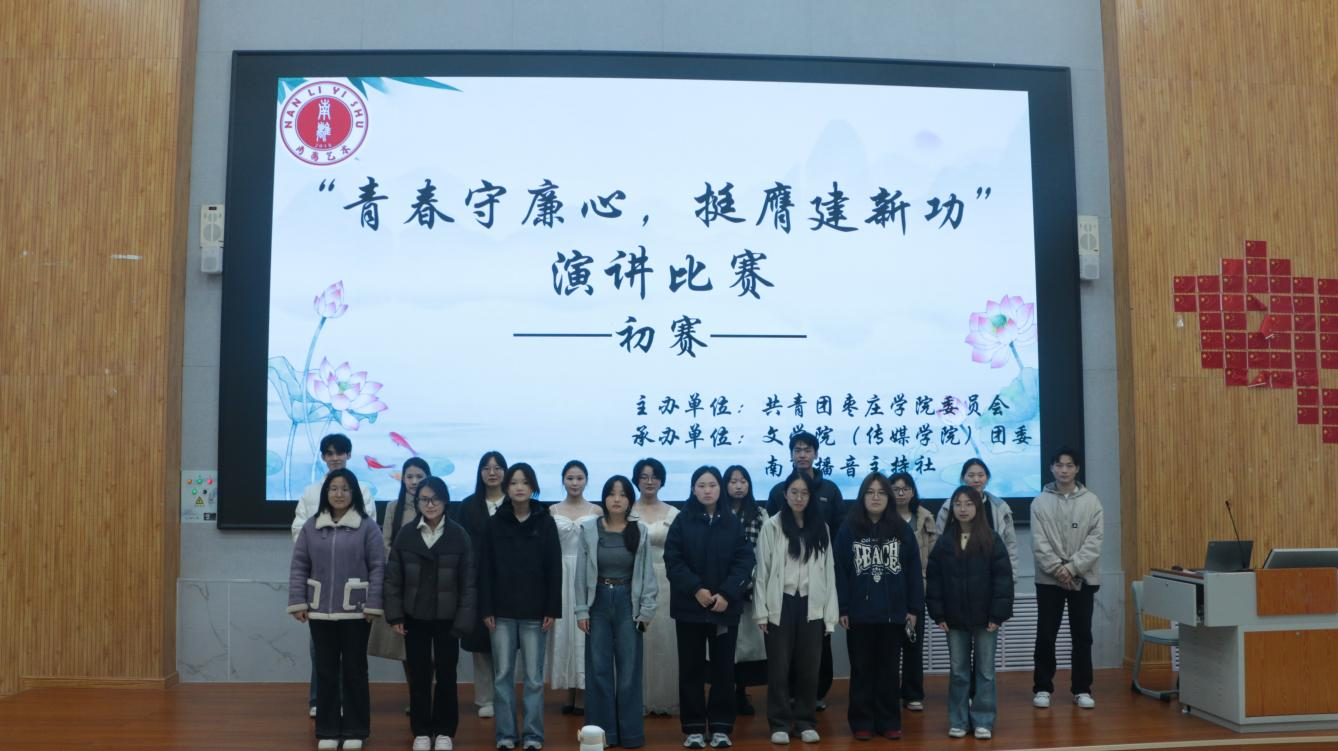 为弘扬廉洁文化,培育新时代青年学生清正廉洁的道德品质,引导广大学生筑牢廉洁思想根基、勇担时代使命,11月8日,bat365正版唯一官网(传媒学院)南离播音主持社承办的“青春守廉心,挺膺建新功”演讲比赛初赛在增信楼3113成功举办。