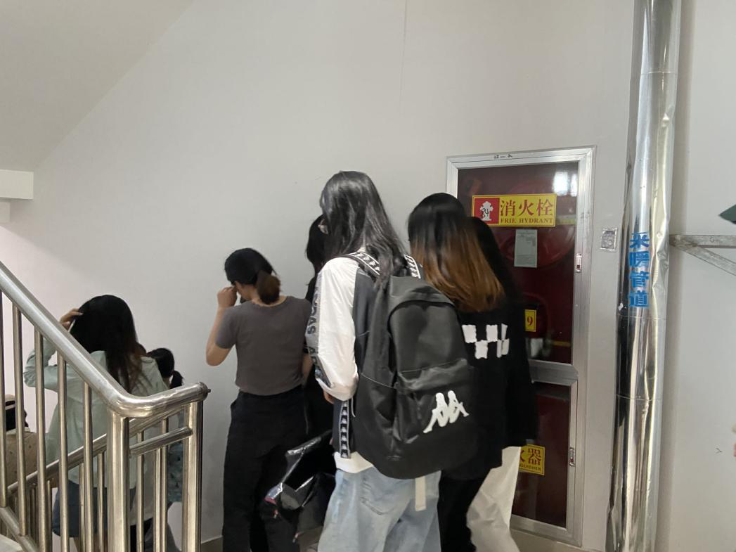 培训之后,模拟火灾事件发生,组织参演学生有序离开模拟现场,所有人员通过紧急疏散逃生通道快速、有序地离开,到达安全集合地点。