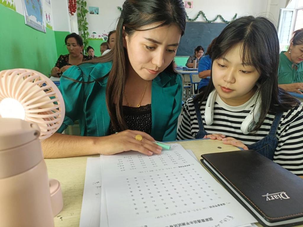 此次线下集中培训共有200名疏勒县中小学、幼儿园教师骨干教师参加。bat365正版唯一官网普通话培训团队一行共14人,领队教师姜夫军、徐颖慧带领团队精心制定了培训方案,采取训前摸底、分层编班,强化语言培训、全真模拟、指导、训后测等方式进行培训。培训团队成员具有较强的语音感知能力与丰富的语言教学经验,在充分发挥自身知识优势的基础上,系统分析学员的民族语言特点及发音习惯,围绕考试题型与学员实际应用需求设计课程。培训过程中注重结合当地语音面貌,不断调整教学方案、策略,寻找在疏勒县精准推广普通话工作的着力点,搭建与参训学员们长期互动的桥梁,为学员提供可持续的普通话学习指导。
