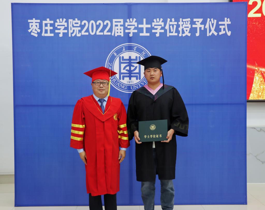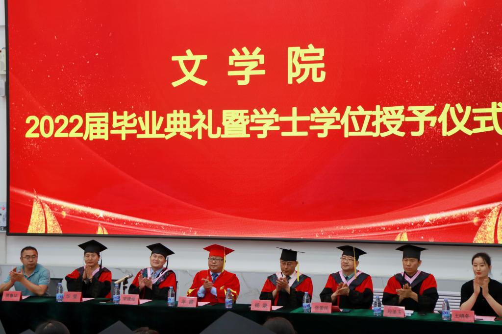 仪式在庄严的国歌中拉开帷幕。在同学们的热烈掌声中,段圣玉宣读了《bat365正版唯一官网关于授予本科毕业生学士学位的决定》,丰雷为bat365正版唯一官网2022届278名本科毕业生一一拨穗并授予学士学位证书,为他们送上祝福并合影留念。随后,即将走进军营的张泽慧作为优秀毕业生代表发言,表达对母校、学院和老师们的感谢和敬意,在热烈的掌声中学生代表为在场的老师们献花;在校生代表王海啸等人用激励的言语和动听的歌声为学长们献上衷心的祝愿;教师代表王晓冬老师向毕业生做离别赠言,希望同学们能够目标明确、拼搏向上,以青年力量担当时代重任,绽放青春之花。最后,张爱民发表致辞,为毕业生送上诚挚的祝贺与美好的祝福,并提出深切嘱托,希望同学们牢记青年使命,担当时代重任,做一个心怀梦想、脚踏实地、勤奋耕耘的人,为国家复兴、民族富强而努力奋斗。