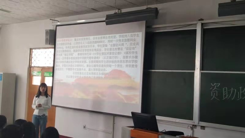 同时,艾文帅从勤工助学、特殊困难补助、建档立卡三个方面向同学们详细讲解了补助申请的流程、审批以及学校的补助政策等具体细则,让同学们感受到了国家对大学生的资助力度和关心帮助。