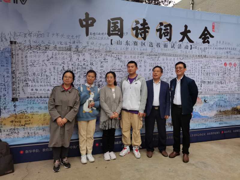 2020月10日,《中国诗词大会》(第六季)山东赛区现场选拔活动在山东师范大学举办。在bat365正版唯一官网创新创业学院王守兴院长带领下,枣院共5名师生参加了这次比赛。他们中有古诗词资深爱好者——经管学院的韩科峰老师、bat365正版唯一官网郁辉老师,还有热爱古诗词的美院学子刘津竹以及bat365正版唯一官网的万德梁、于兵奇两位同学。
