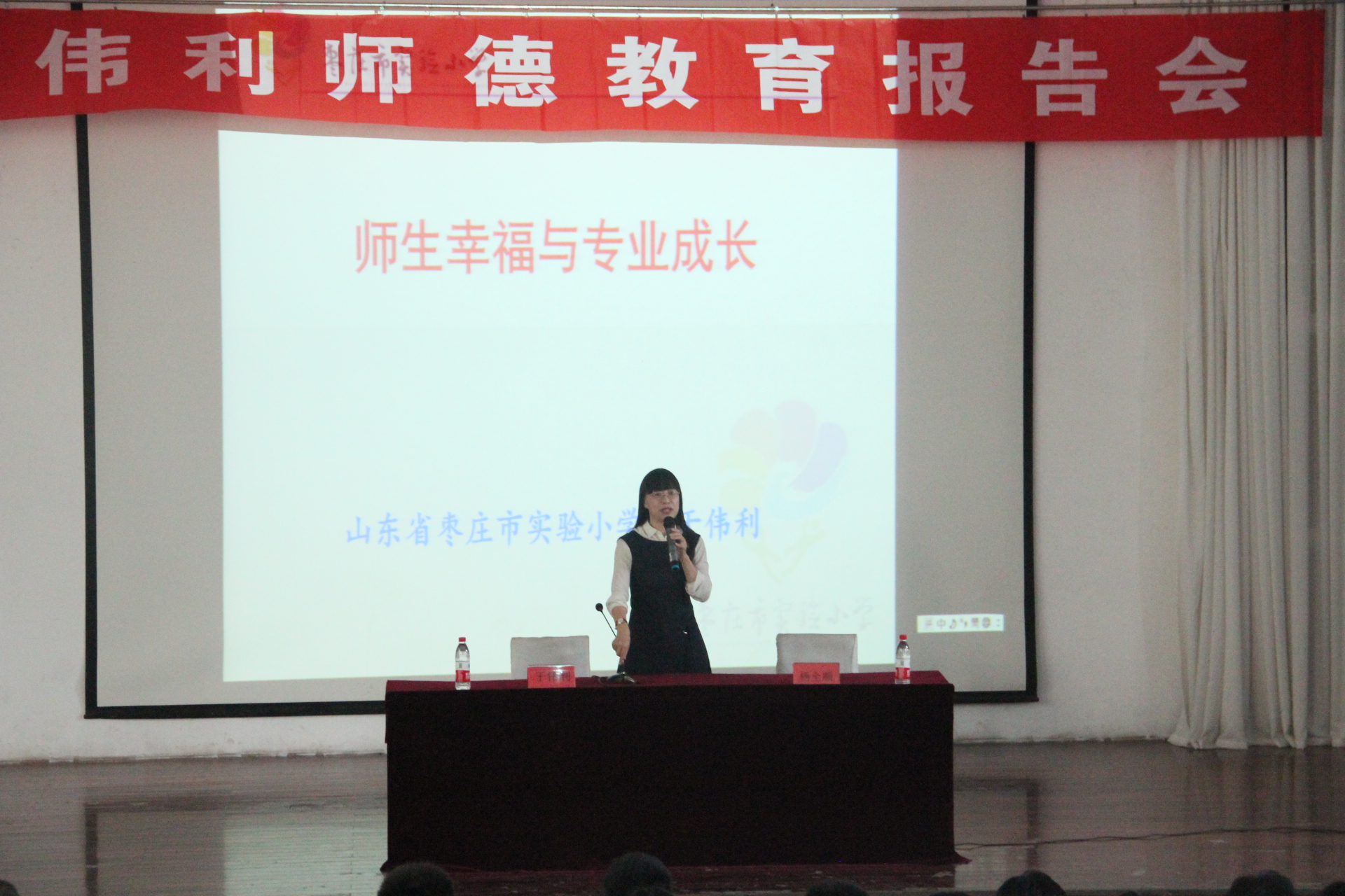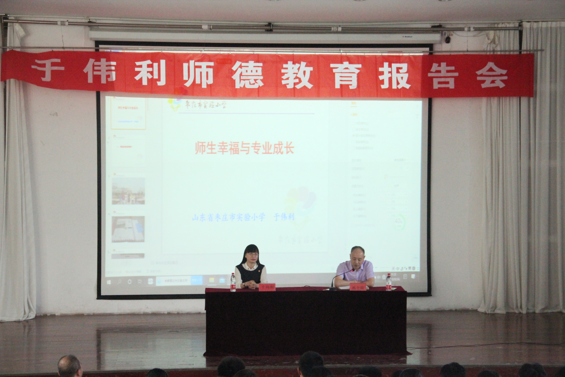 9月26日上午,bat365正版唯一官网在文科楼报告厅举行了名师工作坊专家教育报告会,邀请国家“万人计划”领军人才,享受国务院政府特殊津贴专家,特级教师,正高级教师,全国教学名师,全国首届教育部“领航名师”、国家首届名师名校长“领航班成员”,全国小学语文课堂教学大赛特等奖,全国十佳班主任,全国三八红旗手,国家专利获得者,枣庄实验小学校长于伟利来bat365正版唯一官网做师德教育报告。bat365正版唯一官网副院长杨全顺主持了报告会,bat365正版唯一官网2021届师范专业毕业生及汉语言文学专业的学生参加了报告会。