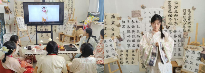 在“古韵风华”环节中,同学们通过汉服纪录片领略华夏服饰之美,借助图文讲解了解历代礼仪演变,于一揖一拜间体会“温润如玉,气质如兰”的君子之风。围炉品茗区营造出宁静雅致的氛围,大家席地而坐,学习煮茶、奉茶与品茗之道,感受茶文化中蕴含的礼节与心境。围棋对弈则让同学们在“手谈”中领悟专注与从容的处世智慧。随后,“现代礼范”板块聚焦实用场景,培训师通过现场演示与互动交流,详细讲解了会议礼仪与职场礼仪等现代行为规范,帮助同学们掌握大方得体、尊重他人的社交表达方式。