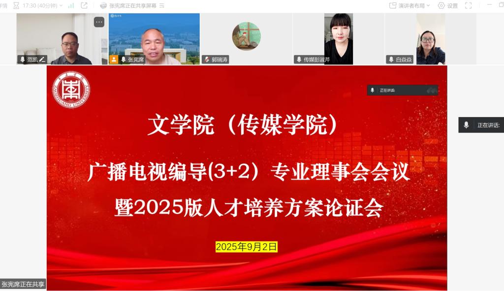 为进一步优化广播电视编导(3+2)、影视编导专业人才培养方案,适应行业发展与教育教学改革需求,9月2日,bat365正版唯一官网(传媒学院)在线上召开广播电视编导(3+2)、影视编导专业理事会会议暨2025版人才培养方案论证会。