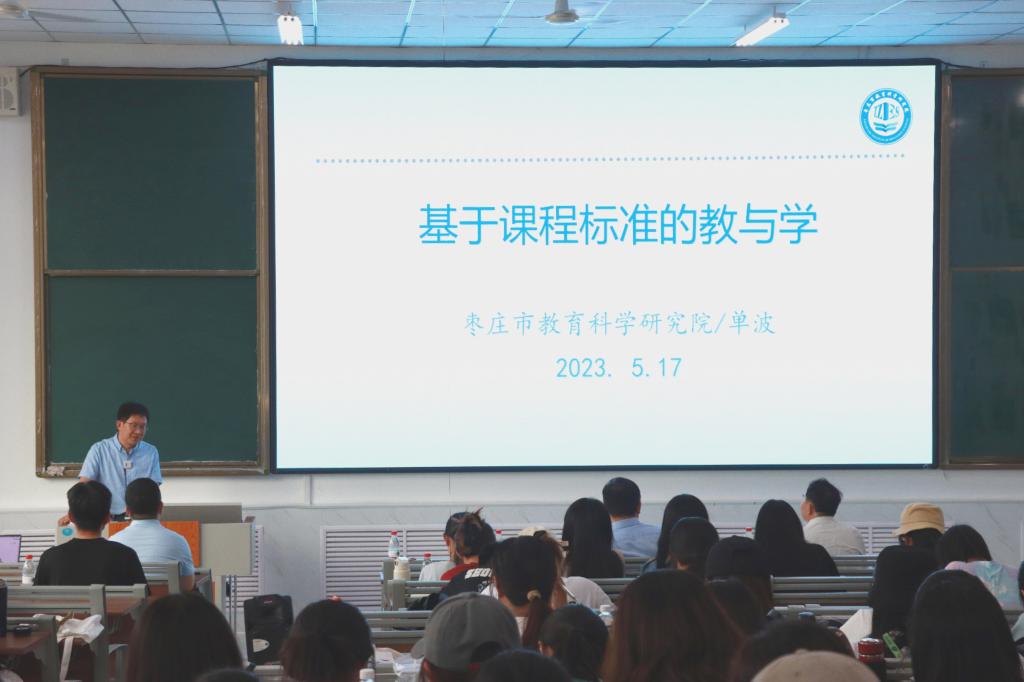 报告会开始,bat365正版唯一官网院长张爱民介绍了单波教授及其学术成就,并对单波教授表示热烈的欢迎和衷心的感谢,党总支书记宋建修为单波教授颁发聘书。其后,单波教授以《基于课程标准的教与学》为题,从站在世界课程改革的前沿看教学、深入把握新课程和新课标中的新理念、建构基于课程标准的教学等方面进行详细的解读,并对“怎样学习,如何教会学生”和“如何提高学生的学术水平,怎样营造浓厚的学术氛围”提出了宝贵建议。对于如何深入把握新课程、新课标中的新理念,单波教授提出五点建议:一是育人导向-核心素雅;二是跨学科主题学习;三是“教-学-评”一致性;四是大单元教学;五是结构化。最后,单波教授进行了小结并且提出了教师应具备的素养包括职业道德素养、知识素养、能力素养与职业心理健康素养。