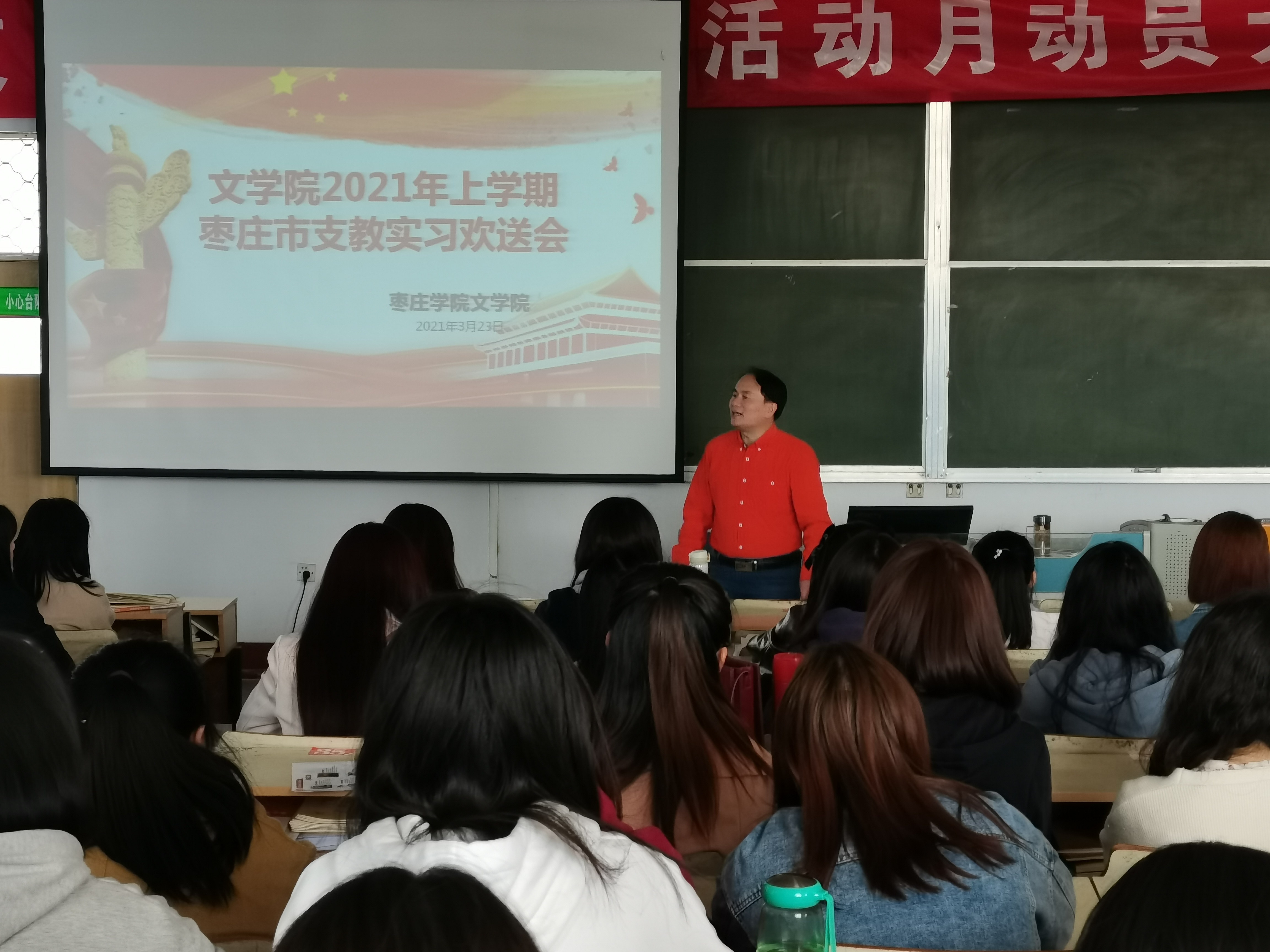 3月23日下午,bat365正版唯一官网在文科楼217教室举办了2021年上半年枣庄市支教实习欢送会。本次欢送会由bat365正版唯一官网党总支书记宋建修主持,即将奔赴枣庄各市区支教的学生到场参加。