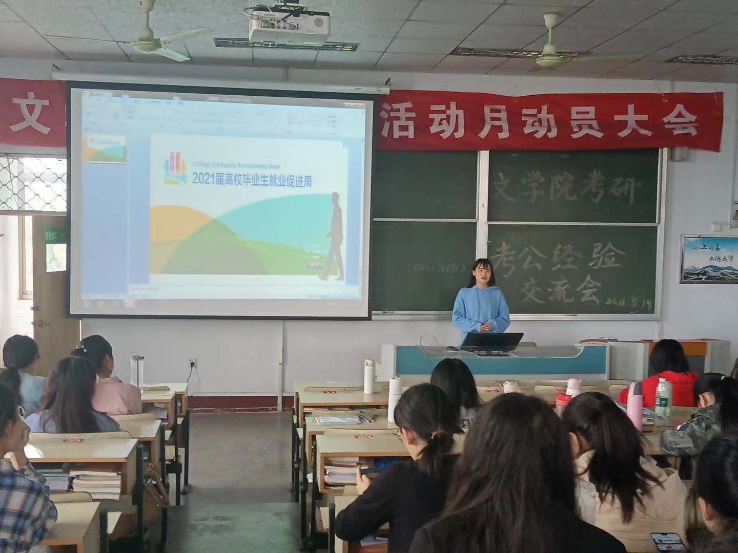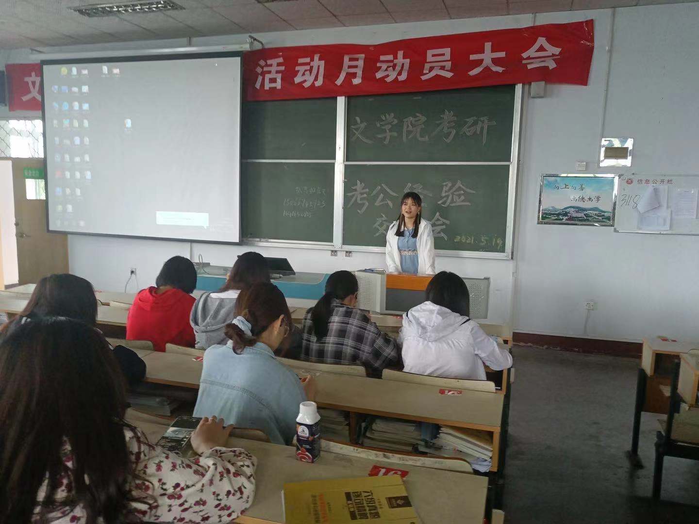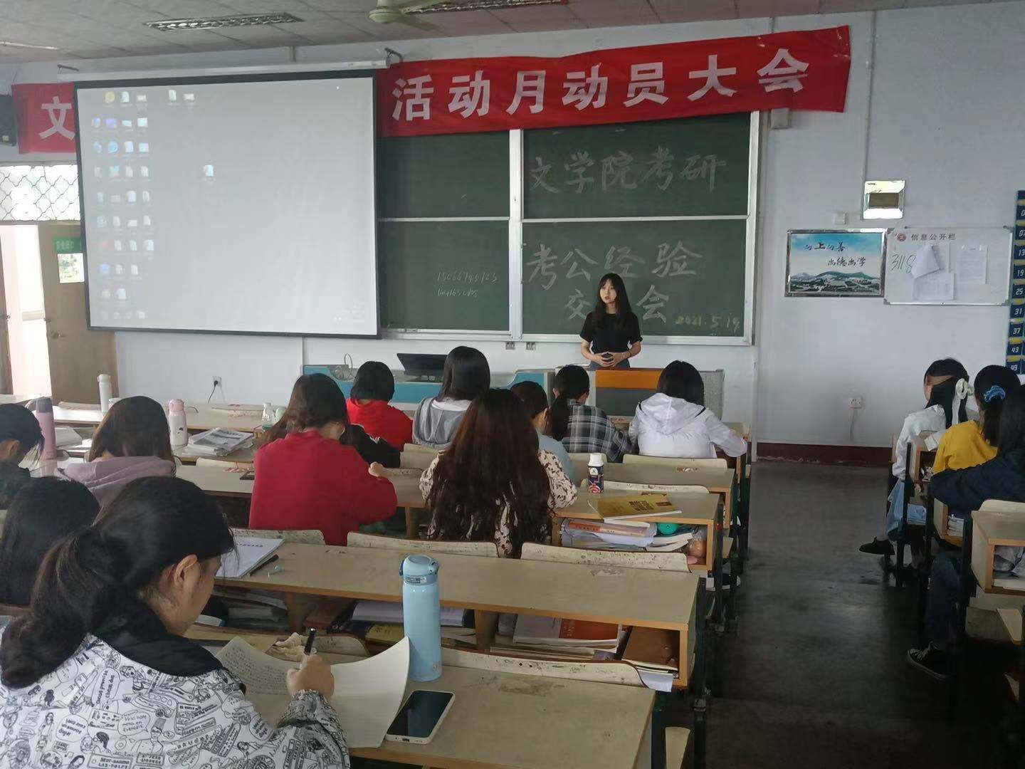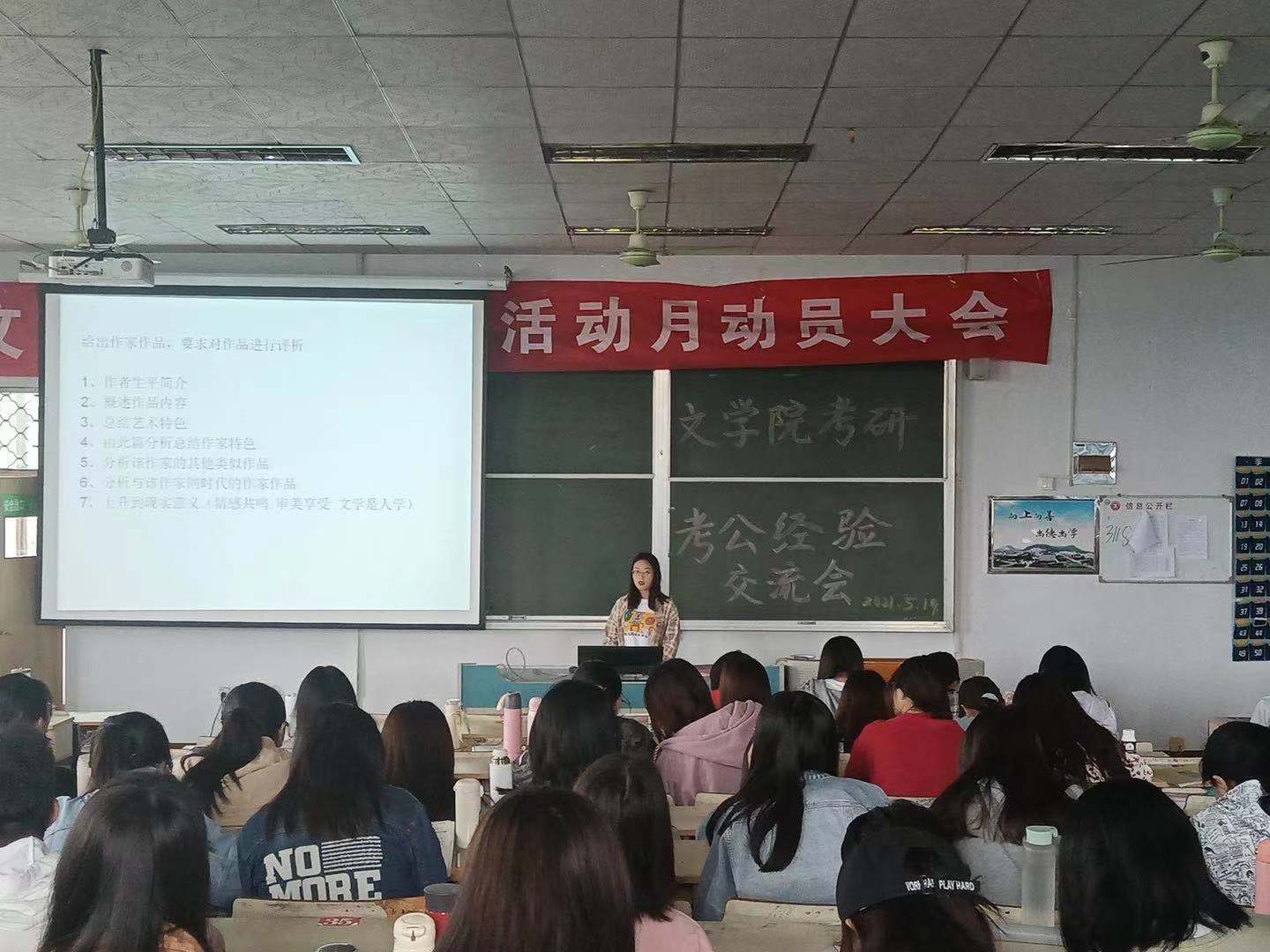 5月19日下午,bat365正版唯一官网于文科楼217教室举办考研考公经验交流会,交流会邀请了我院2021届优秀学子许文雪、李会茹、周璇、关俊喜主讲,bat365正版唯一官网200余名学生到场参加。